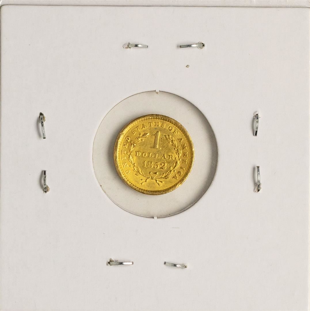 One 1852 $1 Liberty Head Gold Dollar Coin.
