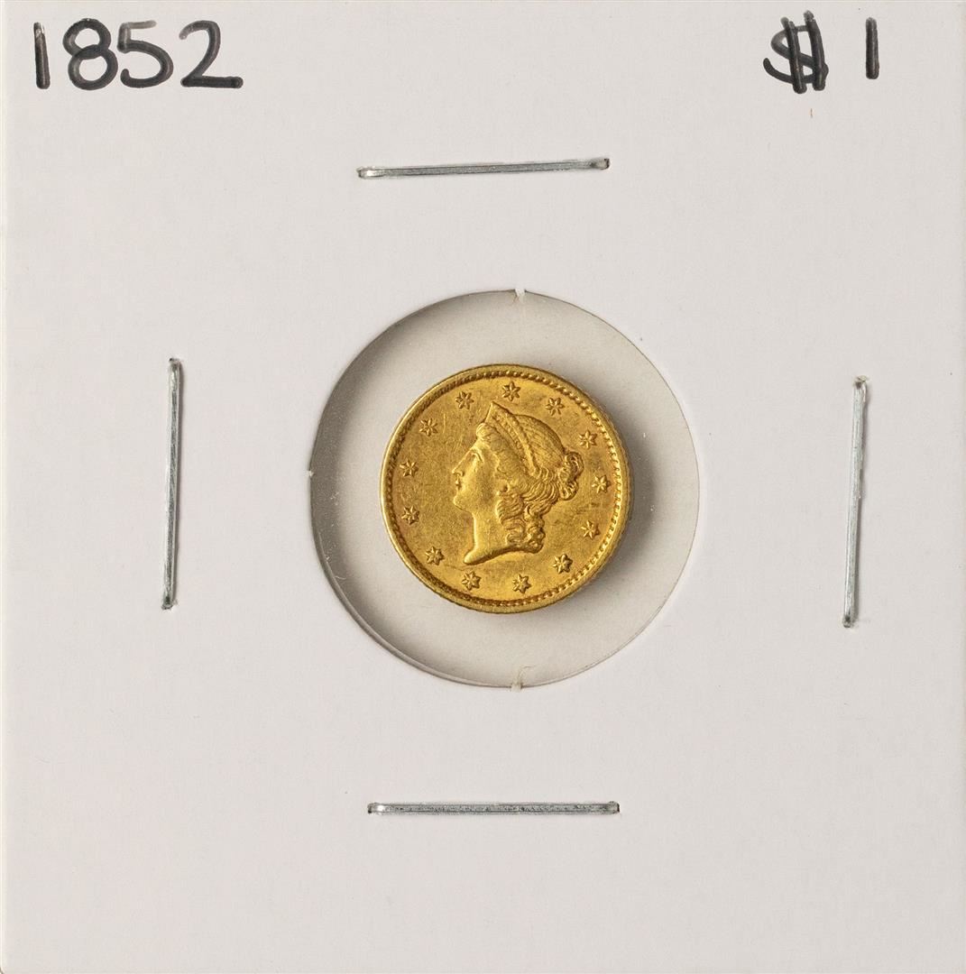 One 1852 $1 Liberty Head Gold Dollar Coin.
