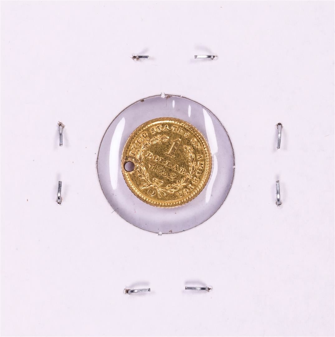 One 1852 $1 Liberty Head Gold Dollar Love Token Coin Holed.
