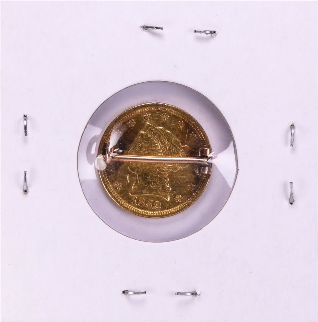 One 1852 $2 1/2 Liberty Head Quarter Eagle Gold Coin Fraternal Knights Love Token Pin.