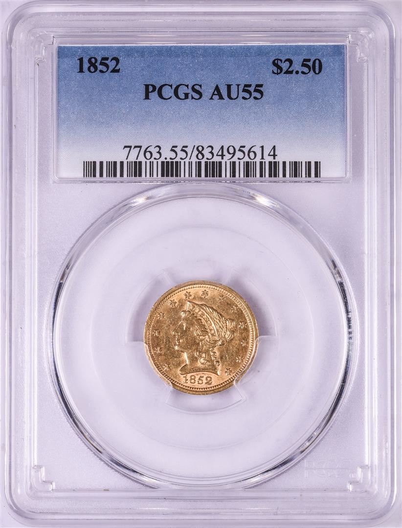 One 1852 $2 1/2 Liberty Head Quarter Eagle Gold Coin PCGS AU55. PCGS Graded.