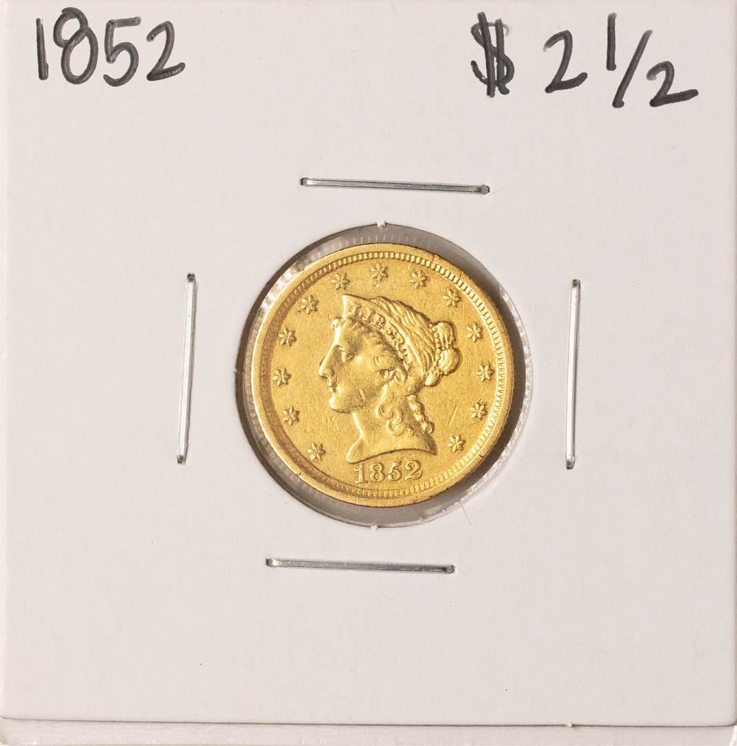 One 1852 $2 1/2 Liberty Head Quarter Eagle Gold Coin.