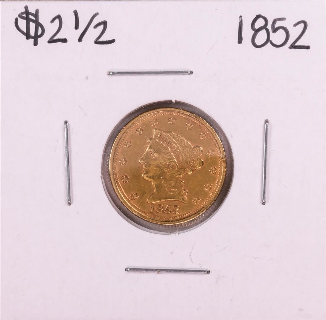 One 1852 $2 1/2 Liberty Head Quarter Eagle Gold Coin.
