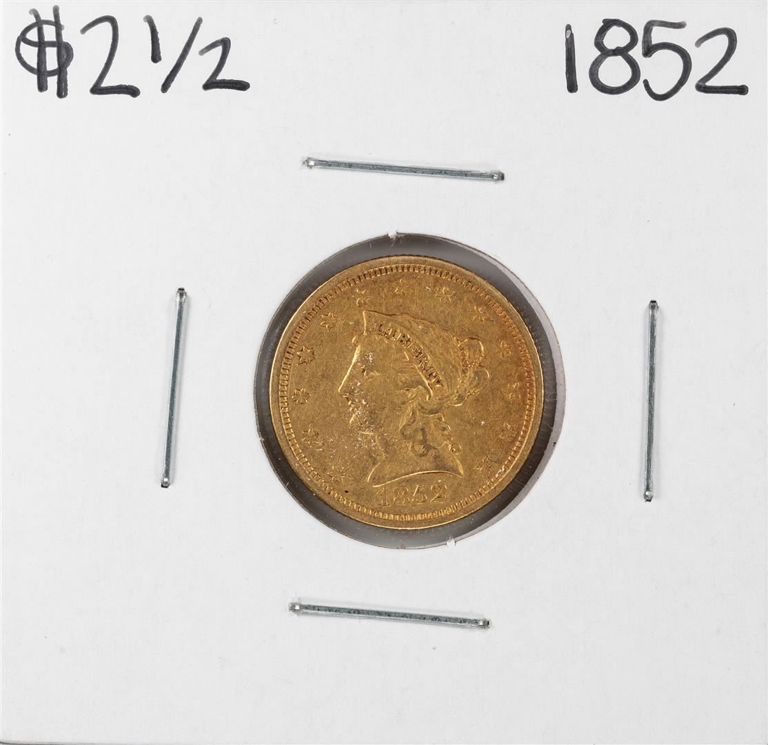 One 1852 $2 1/2 Liberty Head Quarter Eagle Gold Coin.