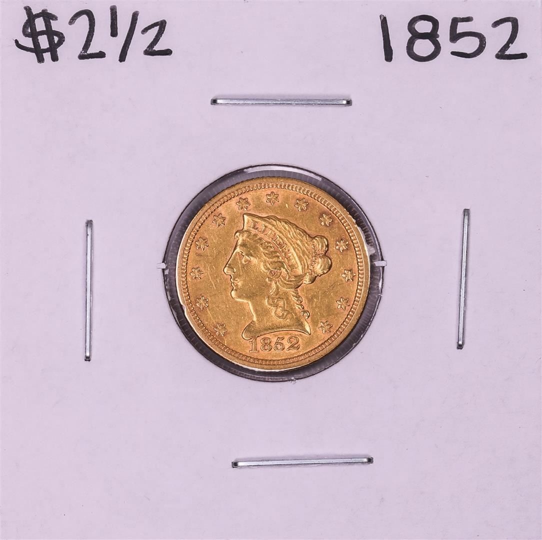One 1852 $2 1/2 Liberty Head Quarter Eagle Gold Coin.