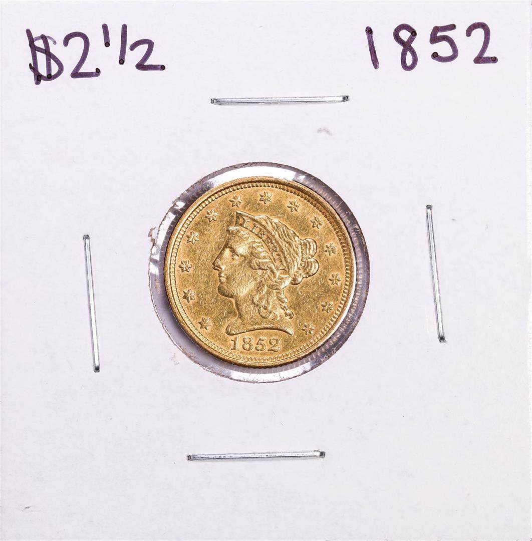 One 1852 $2 1/2 Liberty Head Quarter Eagle Gold Coin.