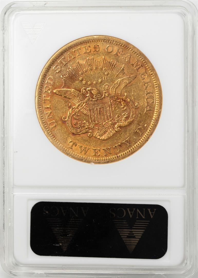 One 1852 $20 Liberty Head Double Eagle Gold Coin ANACS EF45. ANACS Certified.