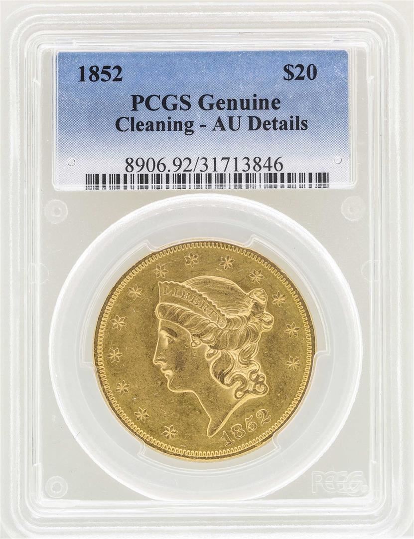 One 1852 $20 Liberty Head Double Eagle Gold Coin PCGS AU Details. PCGS Graded.