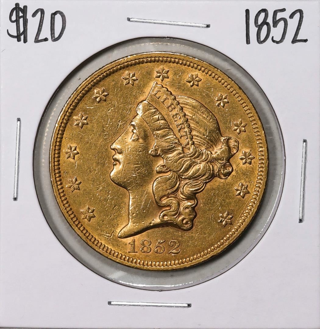 One 1852 $20 Liberty Head Double Eagle Gold Coin.