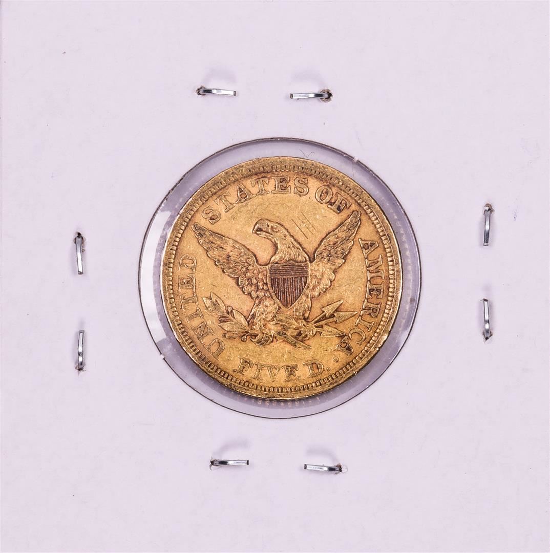 One 1852 $5 Liberty Head Half Eagle Gold Coin.