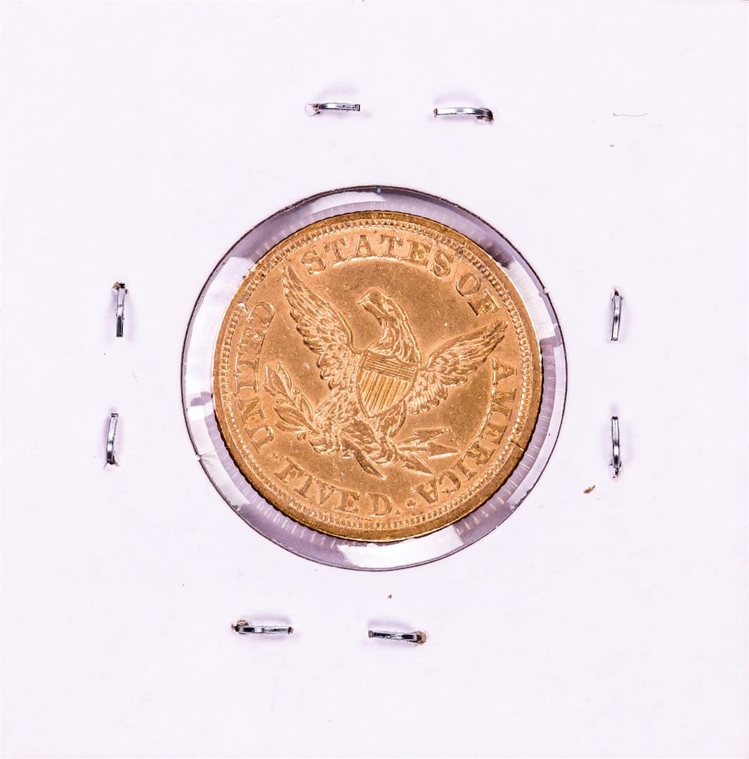 One 1852 $5 Liberty Head Half Eagle Gold Coin.