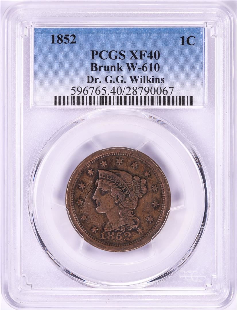 One 1852 Large Braided Hair Cent Coin PCGS XF40 Brunk W-610.