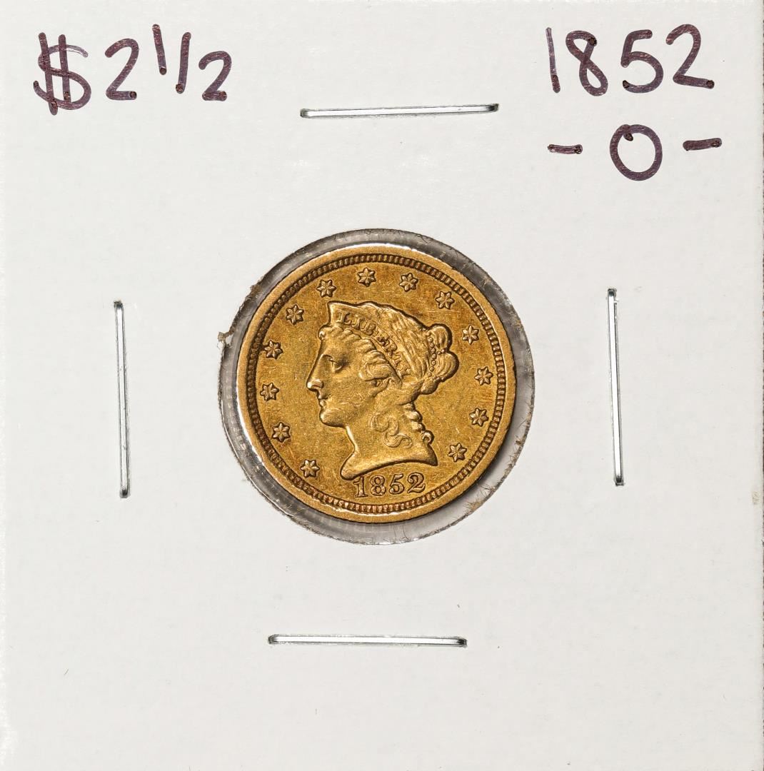 One 1852-O $2 1/2 Liberty Head Quarter Eagle Gold Coin.