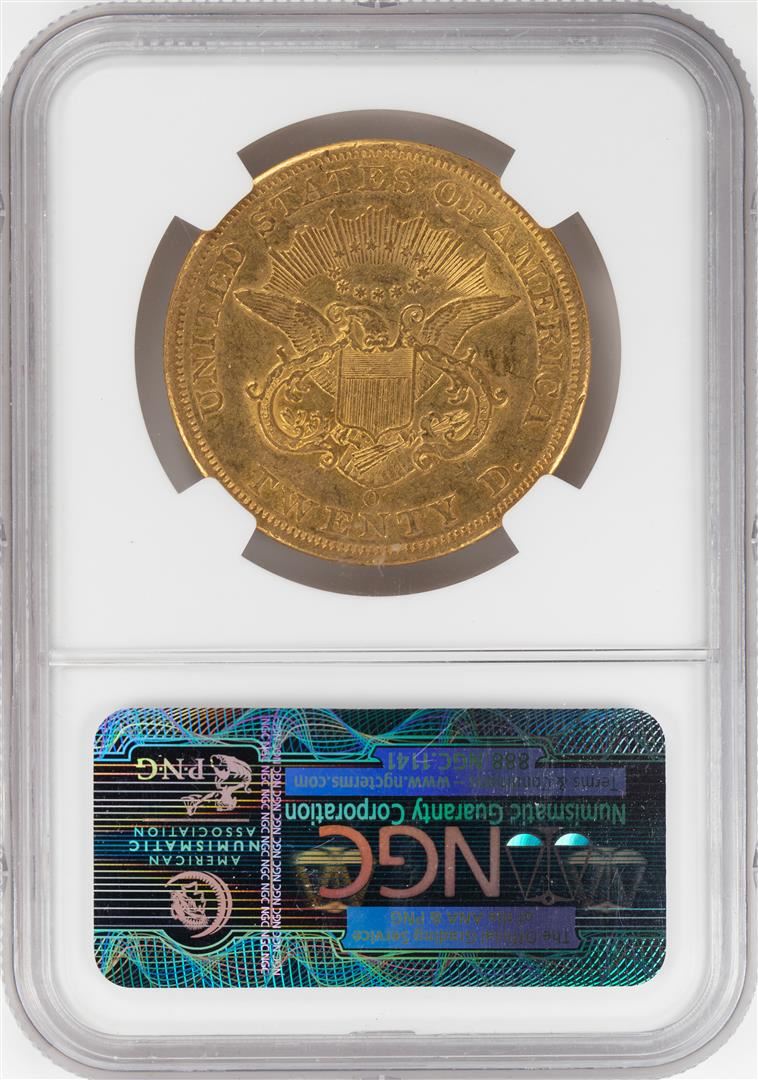 One 1852-O $20 Liberty Head Double Eagle Gold Coin NGC AU53. NGC Certified.