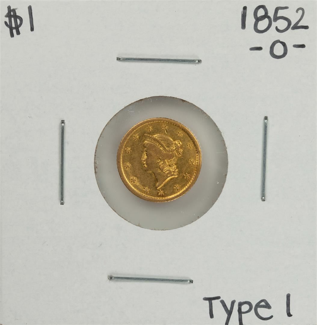 One 1852-O Type 1 $1 Liberty Head Gold Dollar Coin.