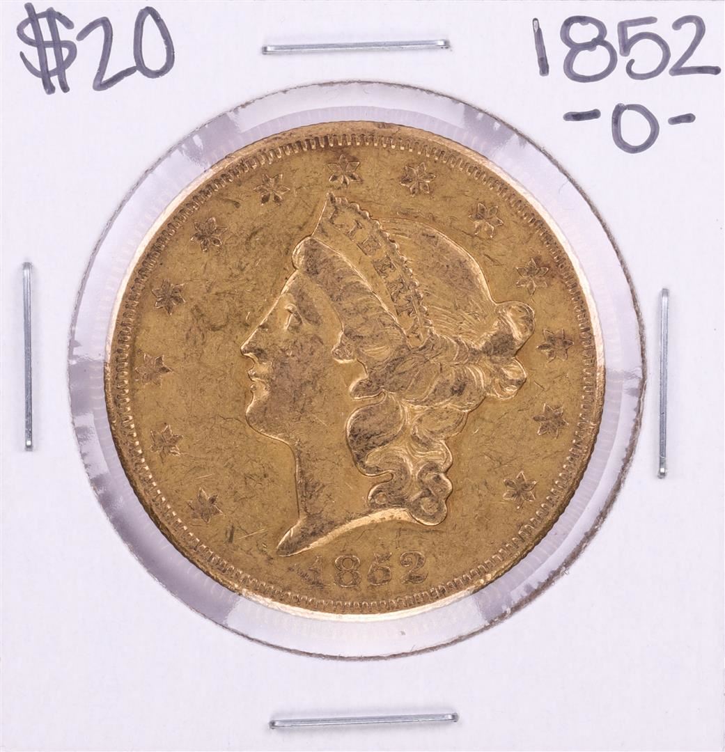 One 1852-O Type 1 $20 Liberty Head Double Eagle Gold Coin.