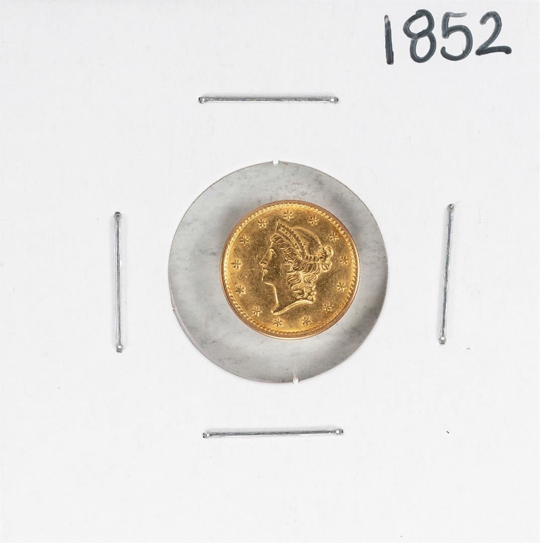 One 1852 Type 1 $1 Liberty Head Gold Dollar Coin.