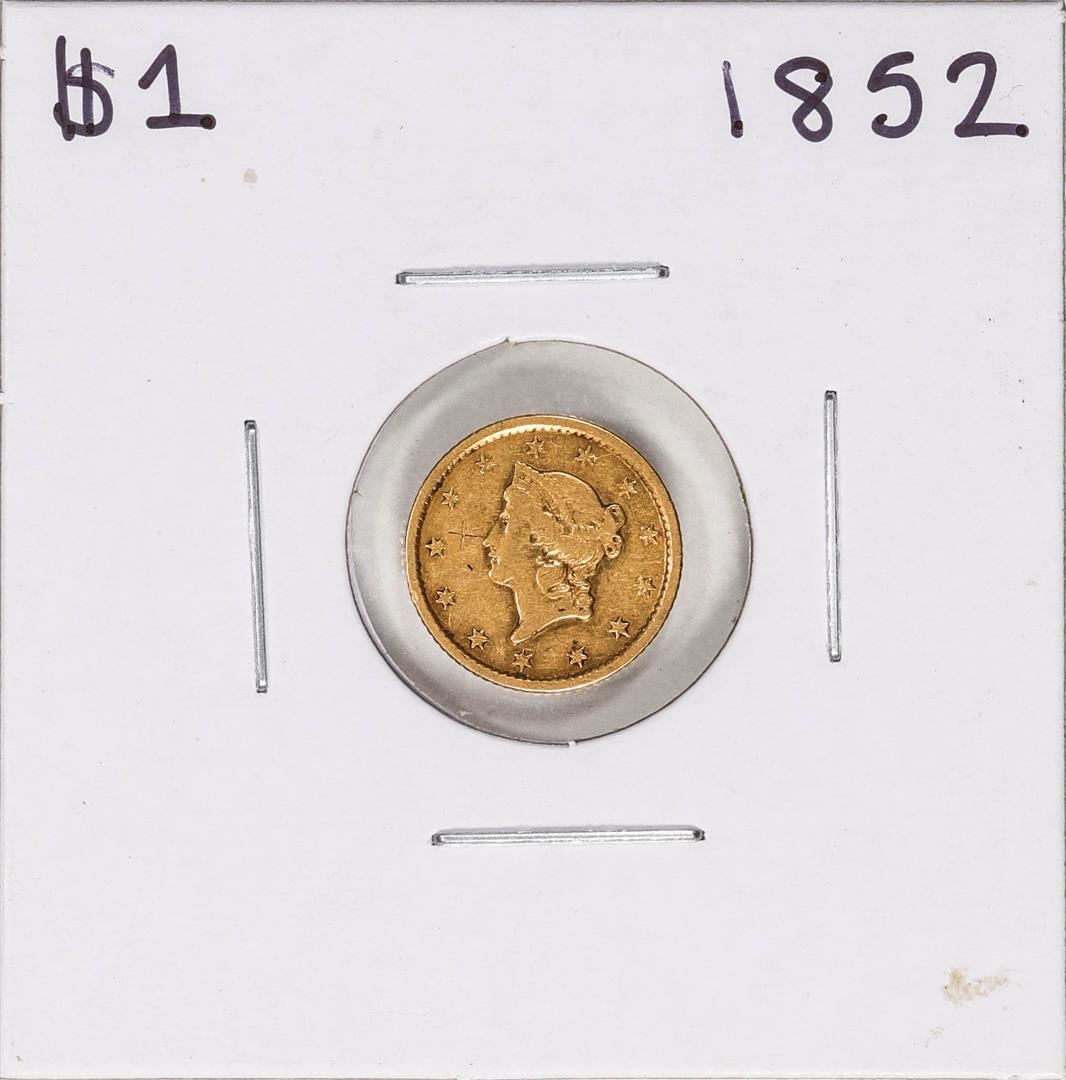 One 1852 Type 1 $1 Liberty Head Gold Dollar Coin.