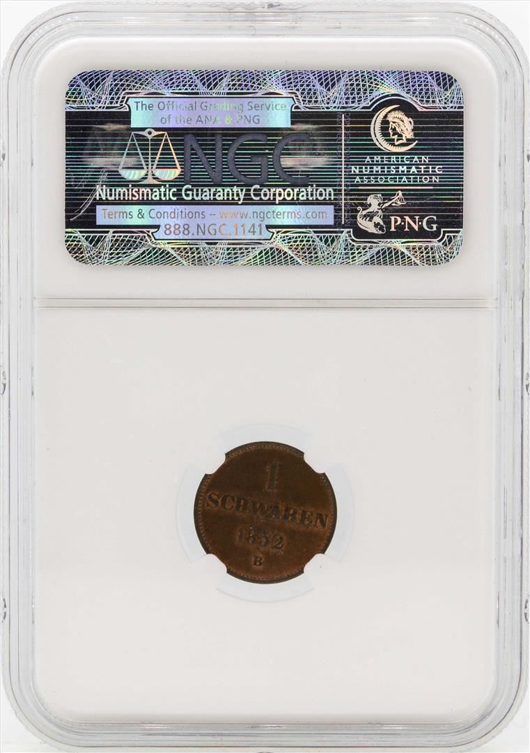 One 1852B Germany Schwaren Coin BGC MS63 RB.