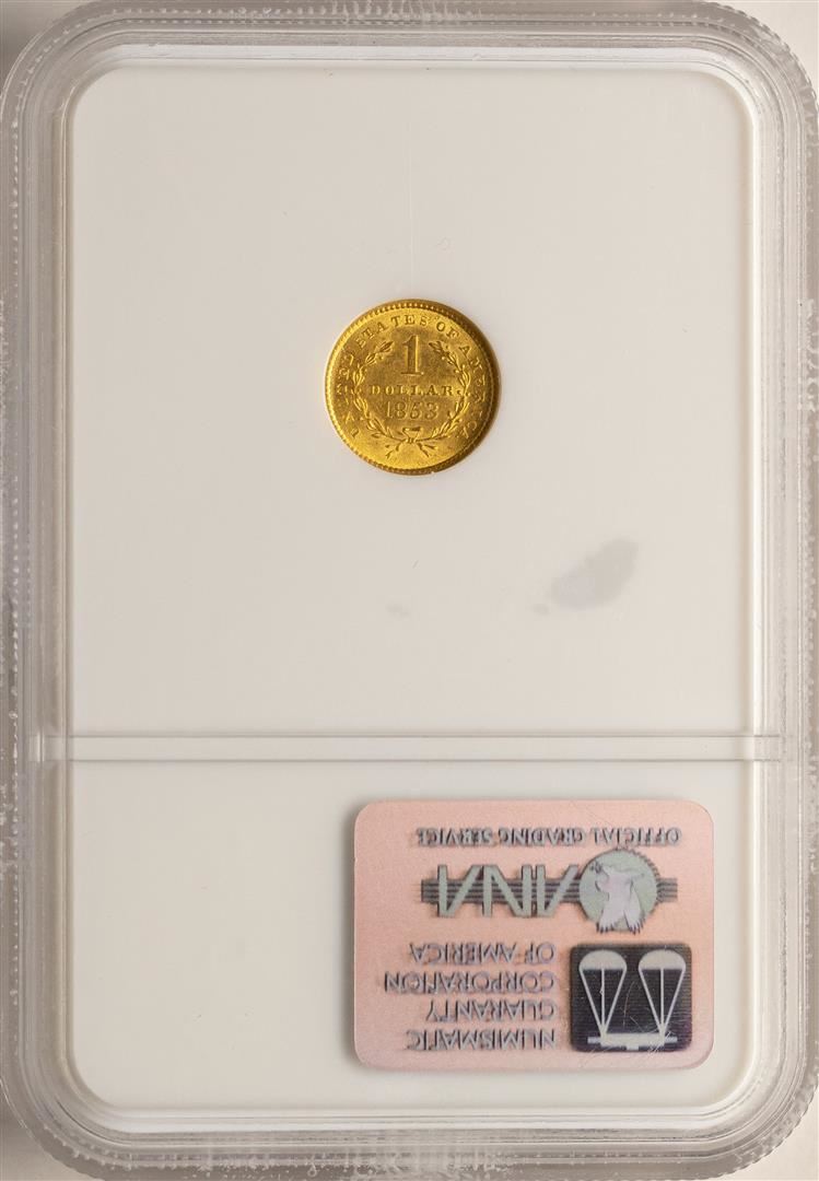 One 1853 $1 Liberty Head Gold Dollar Coin NGC MS63. NGC Certified.