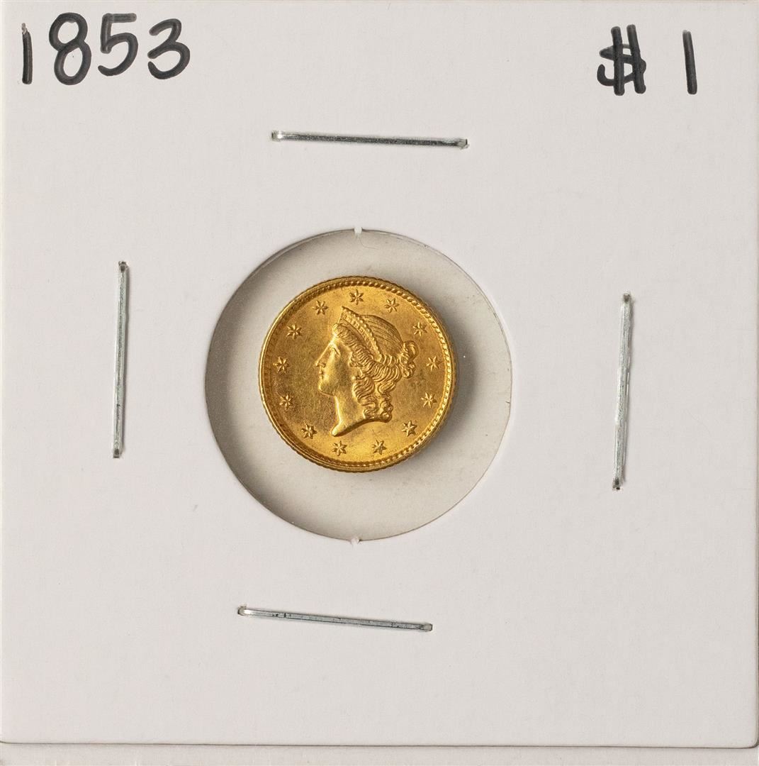 One 1853 $1 Liberty Head Gold Dollar Coin.