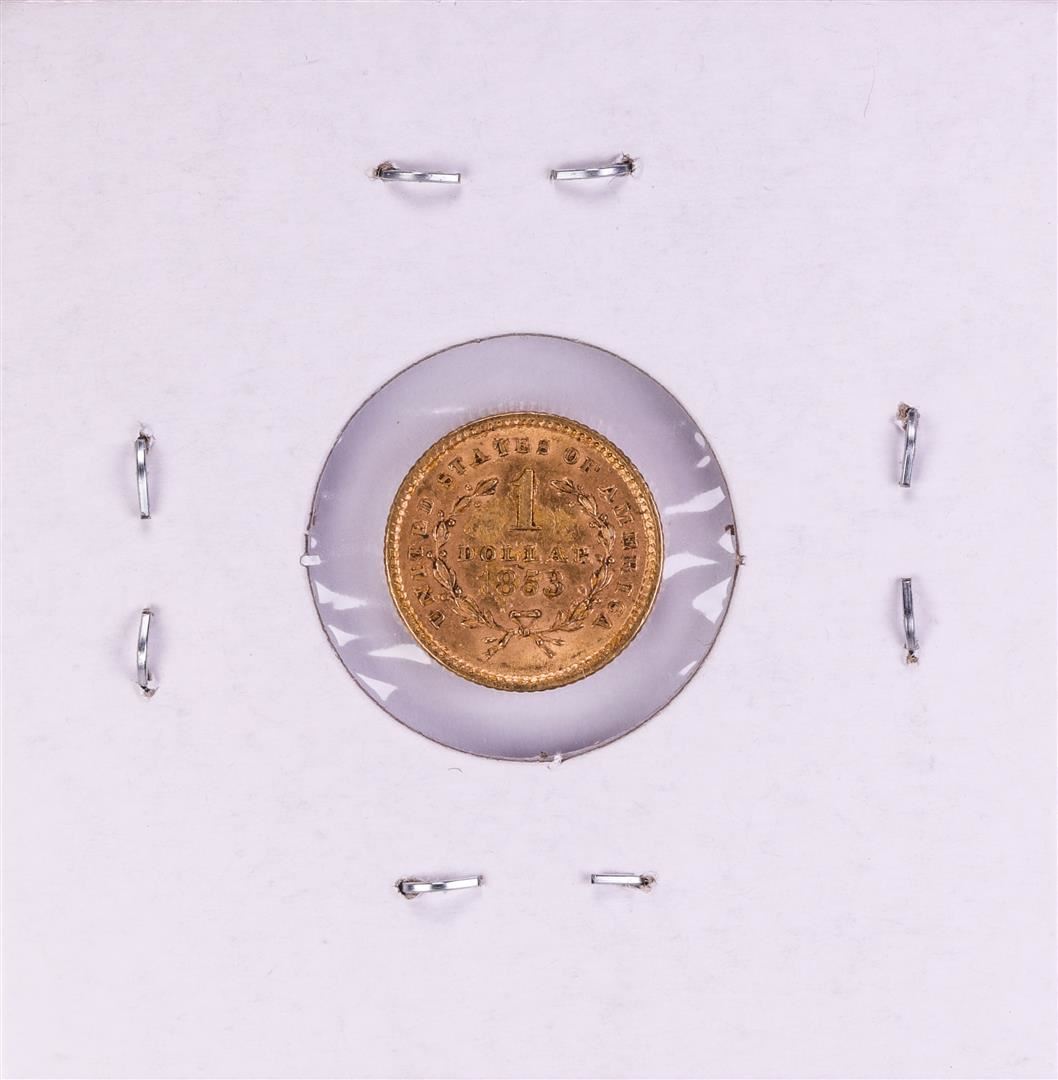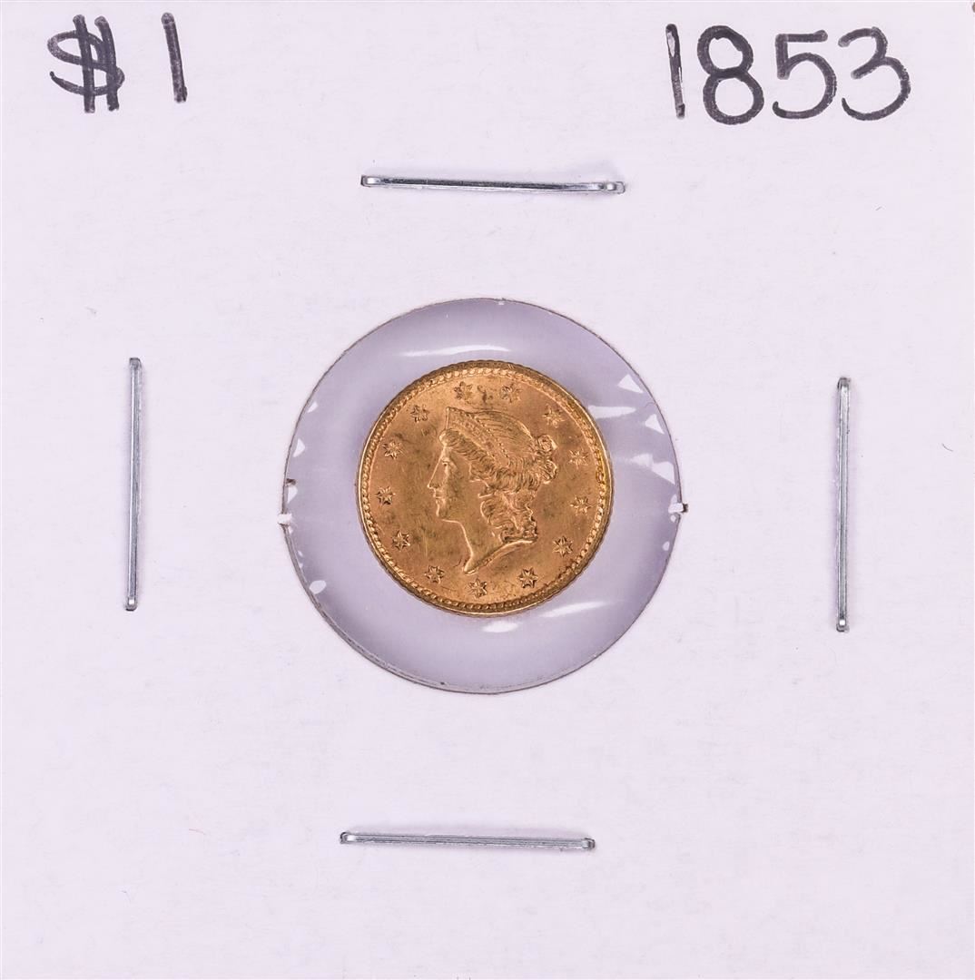 One 1853 $1 Liberty Head Gold Dollar Coin.