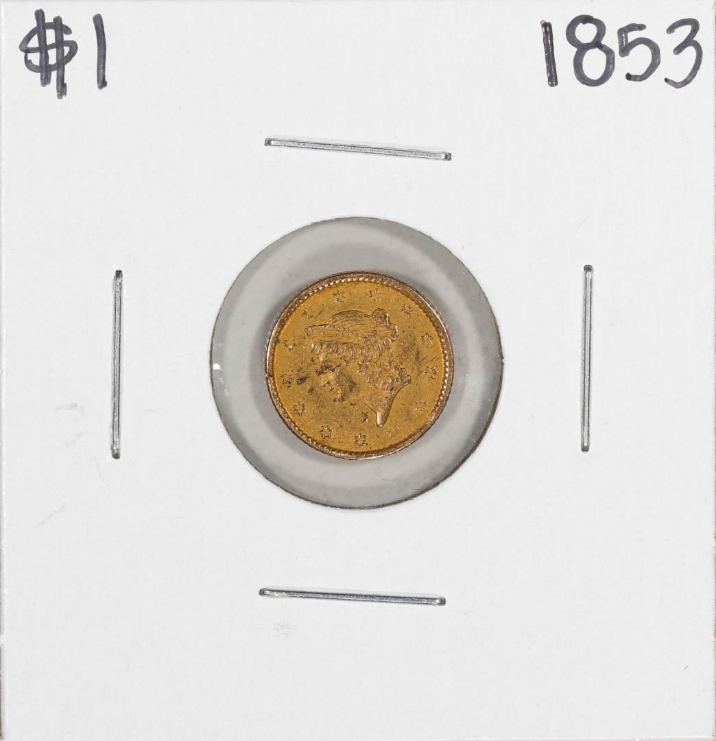 One 1853 $1 Liberty Head Gold Dollar Coin.