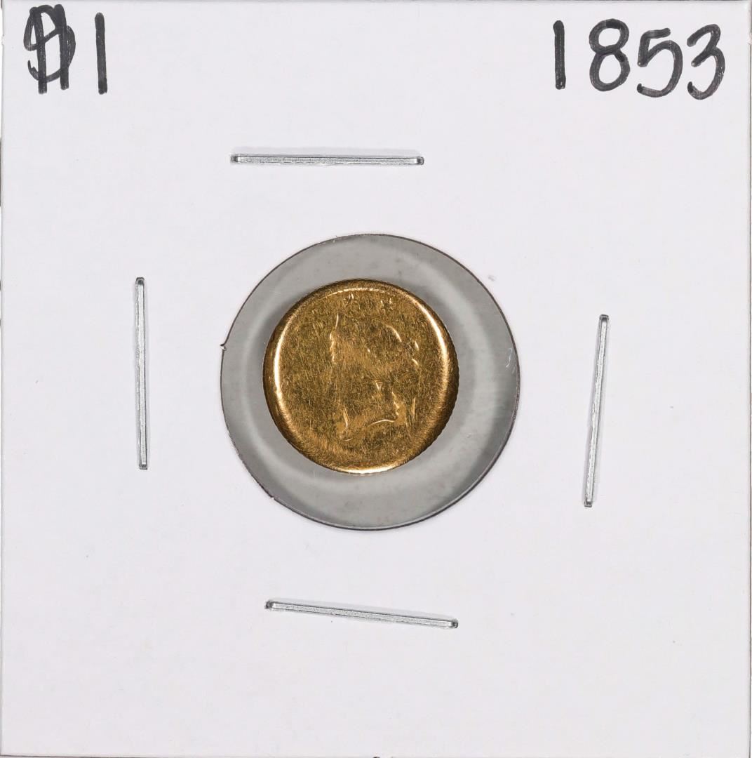 One 1853 $1 Liberty Head Gold Dollar Coin.