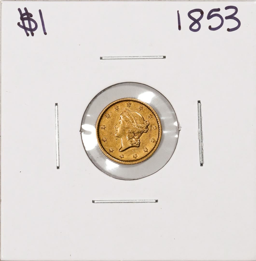 One 1853 $1 Liberty Head Gold Dollar Coin.