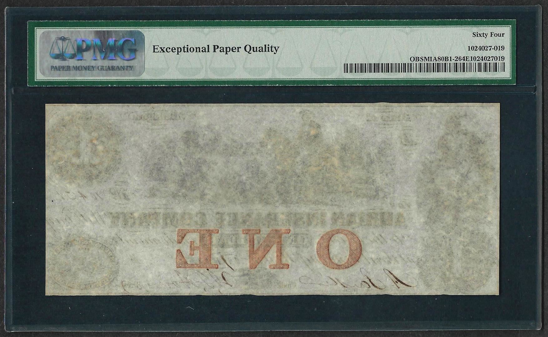 One 1853 $1 The Adrian Insurance Company Obsolete Note PMG Choice Uncirculated 64EPQ. PMG Certified.