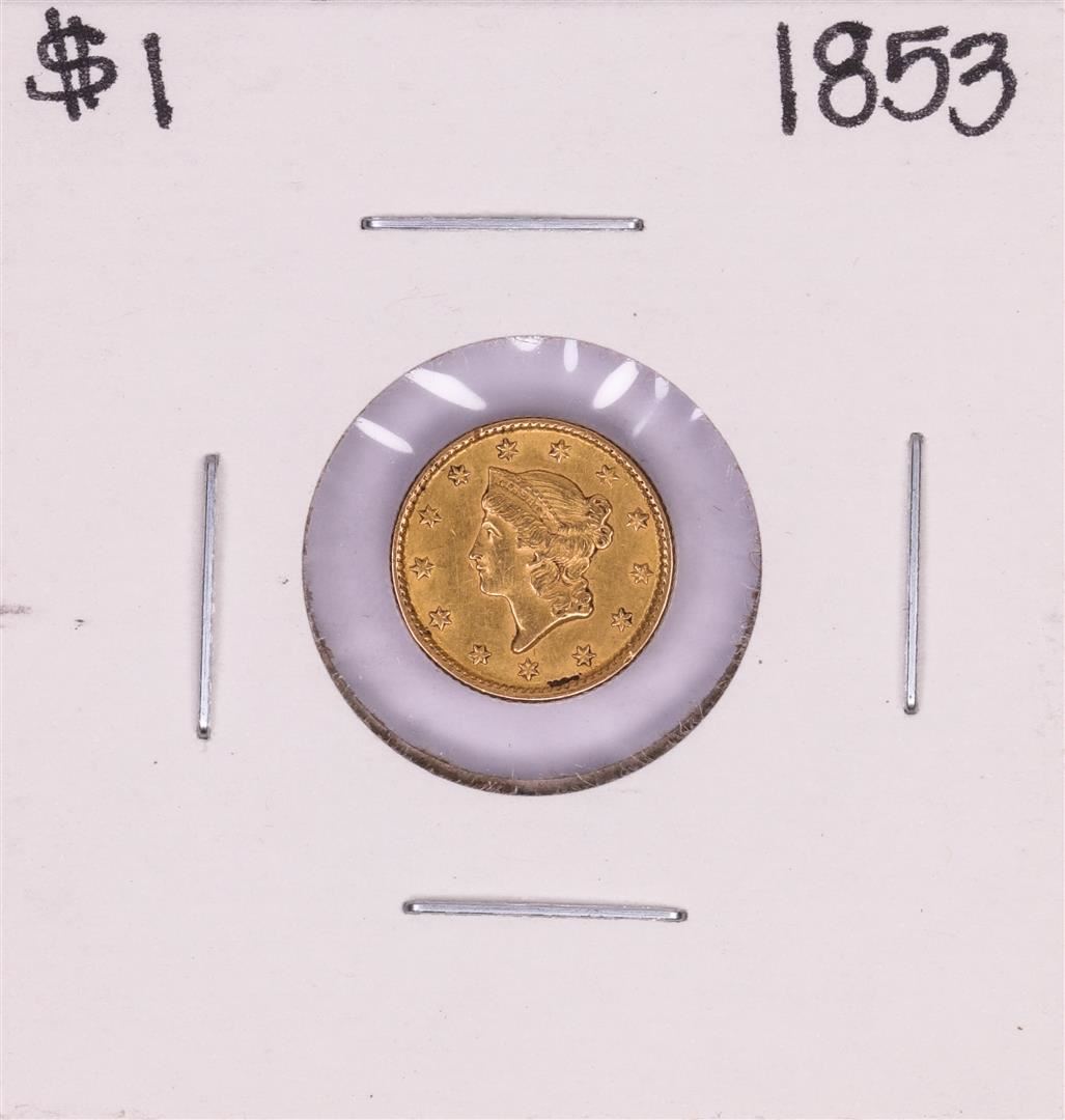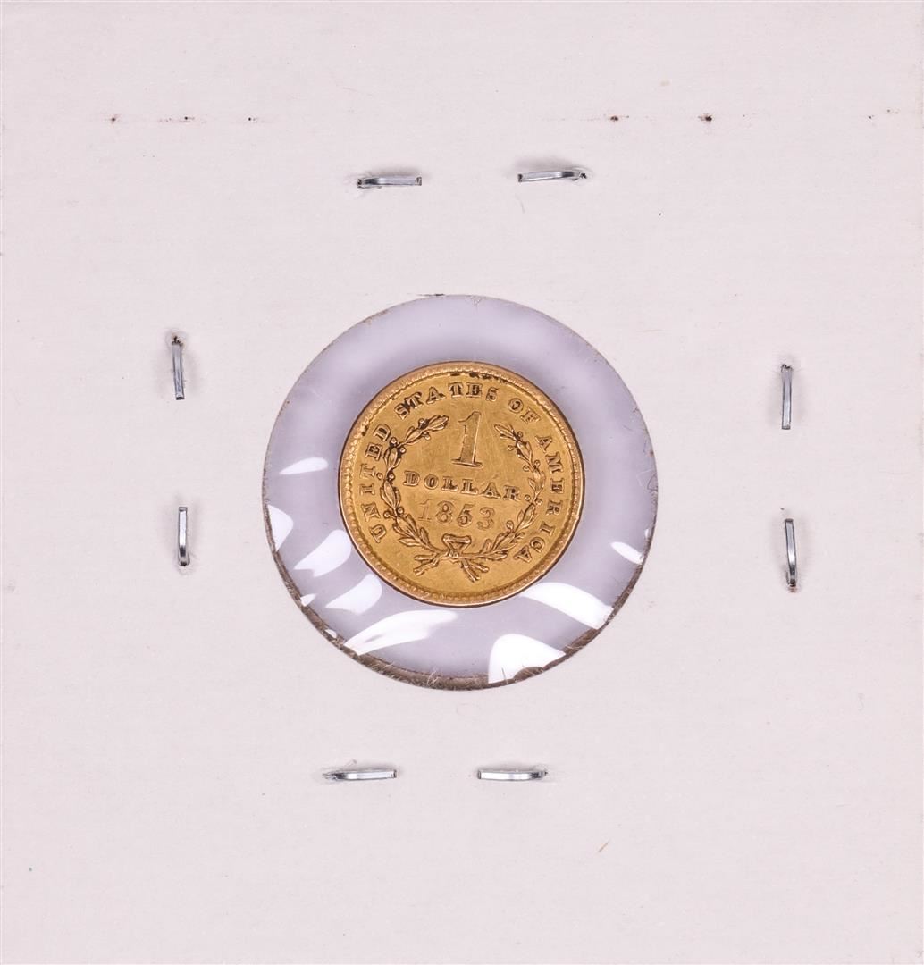 One 1853 $1 Type 1 Liberty Head Gold Dollar Coin.