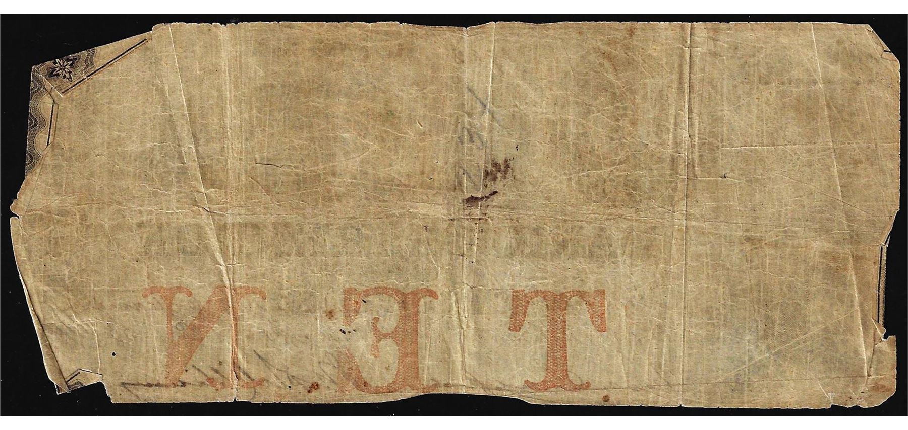 One 1853 $10 Bank of Clarendon Fayetteville, North Carolina Obsolete Bank Note.