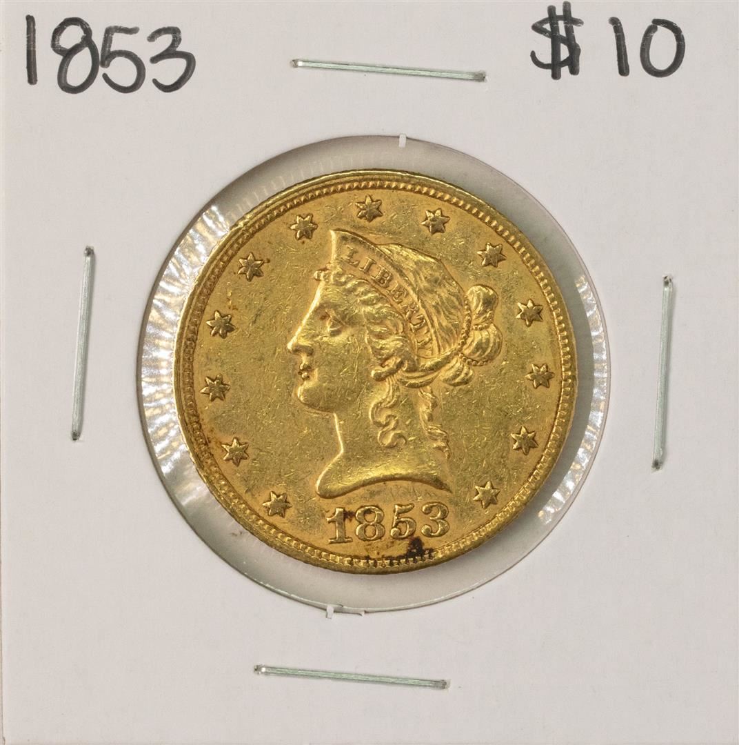 One 1853 $10 Liberty Head Eagle Gold Coin.