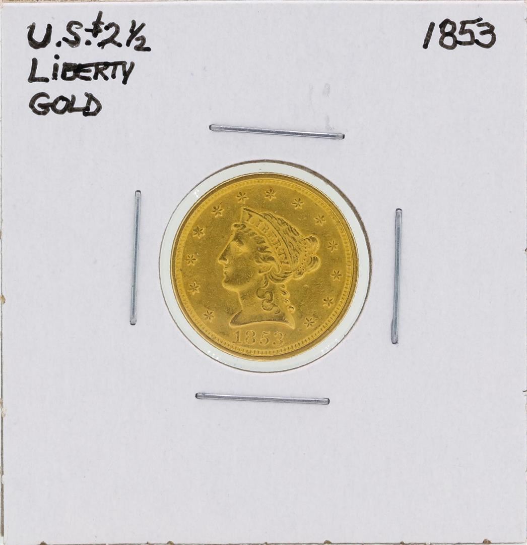 One 1853 $2 1/2 Liberty Head Quarter Eagle Gold Coin.