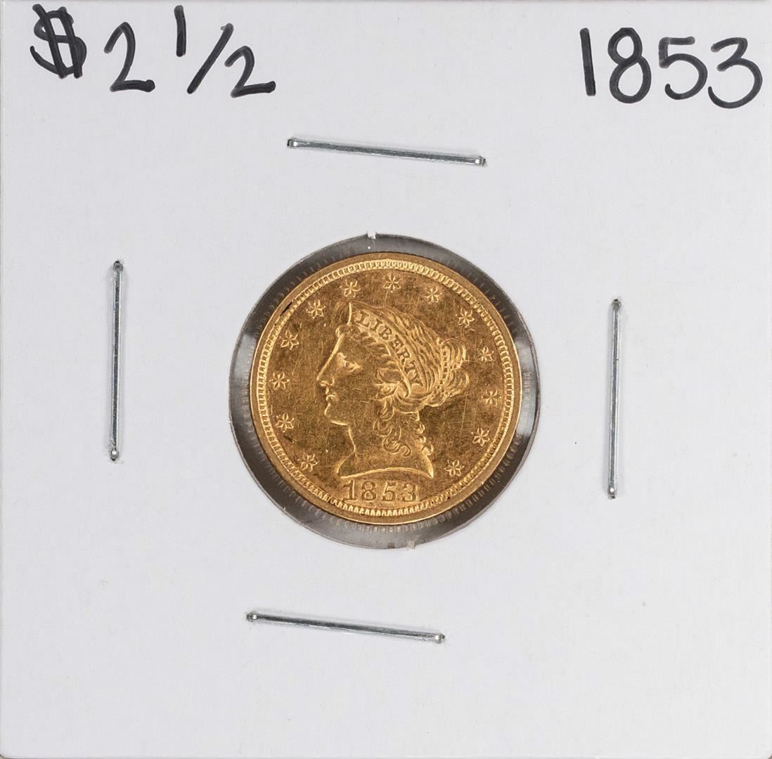 One 1853 $2 1/2 Liberty Head Quarter Eagle Gold Coin.