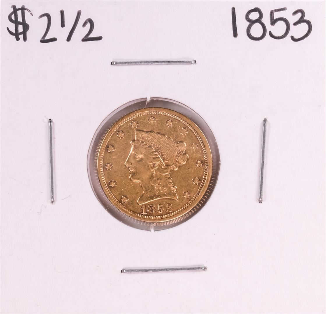 One 1853 $2 1/2 Liberty Head Quarter Eagle Gold Coin.