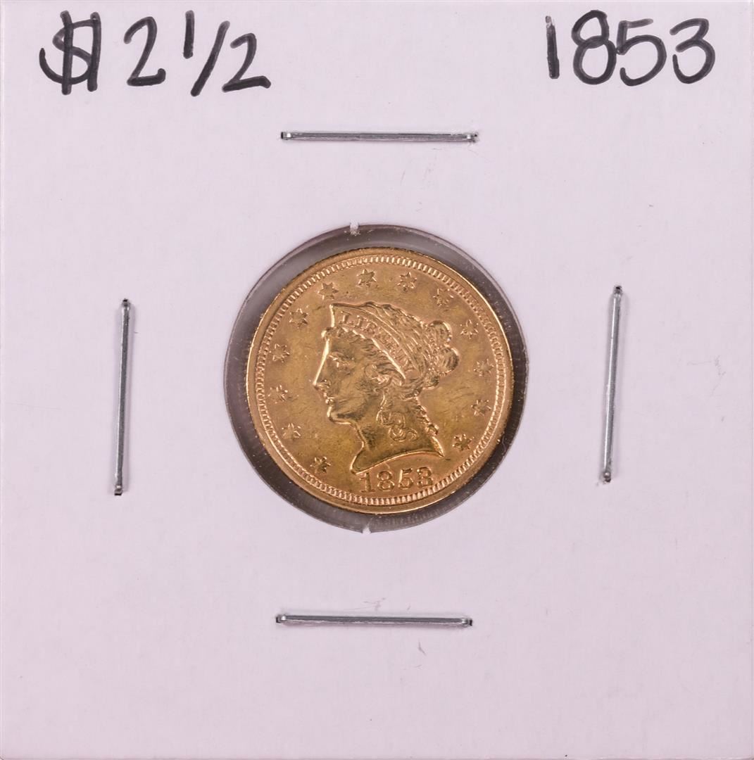 One 1853 $2 1/2 Liberty Head Quarter Eagle Gold Coin.