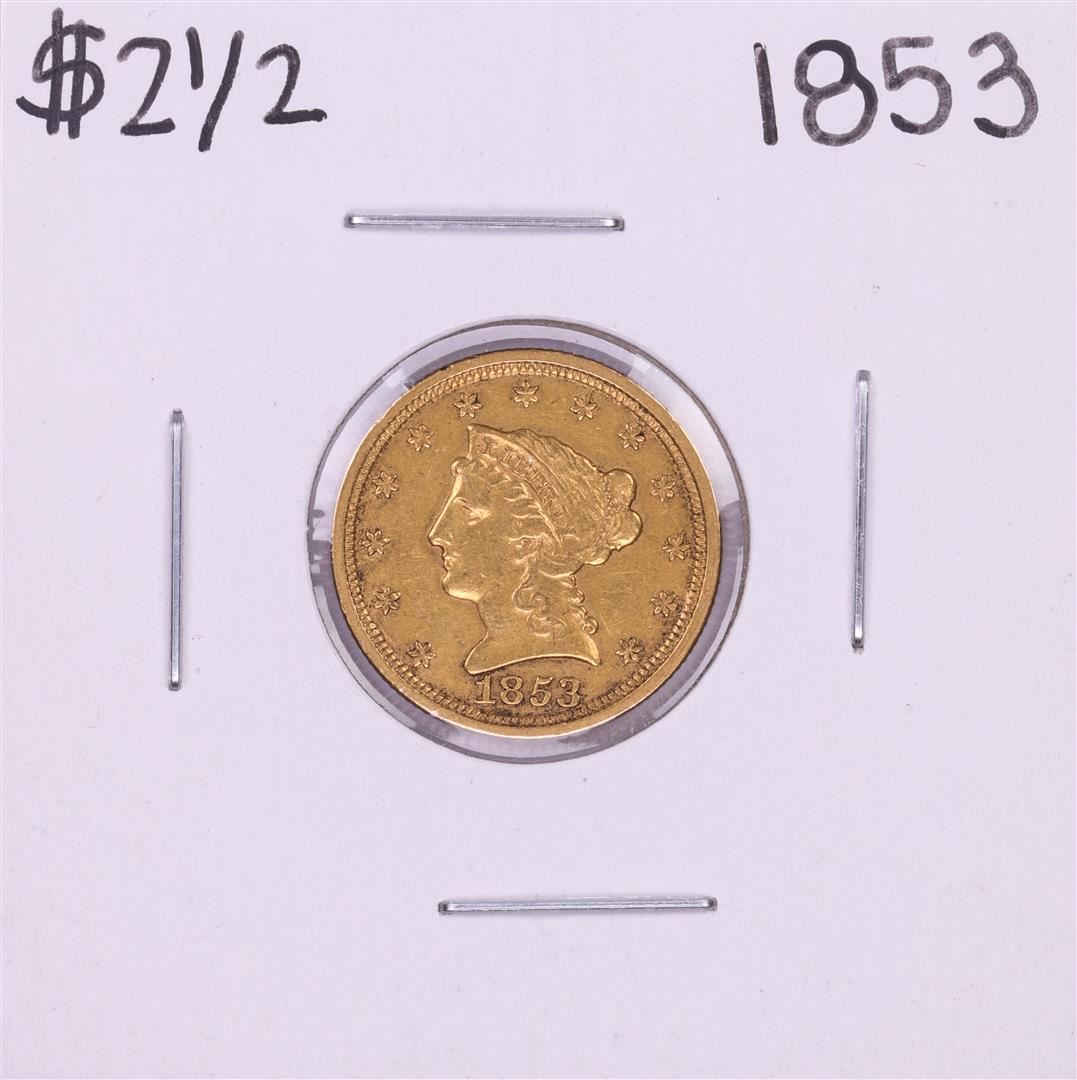 One 1853 $2 1/2 Liberty Head Quarter Eagle Gold Coin.