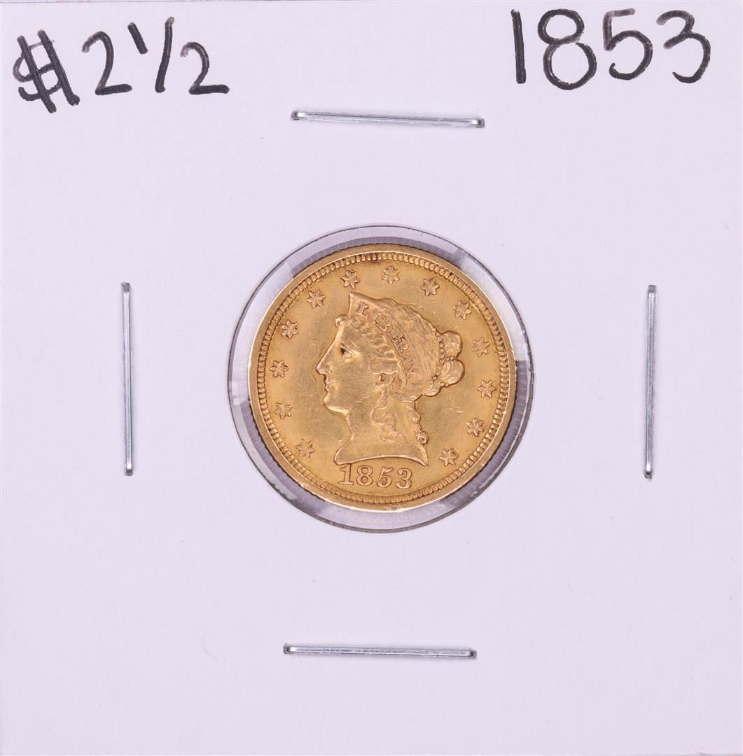 One 1853 $2 1/2 Liberty Head Quarter Eagle Gold Coin.