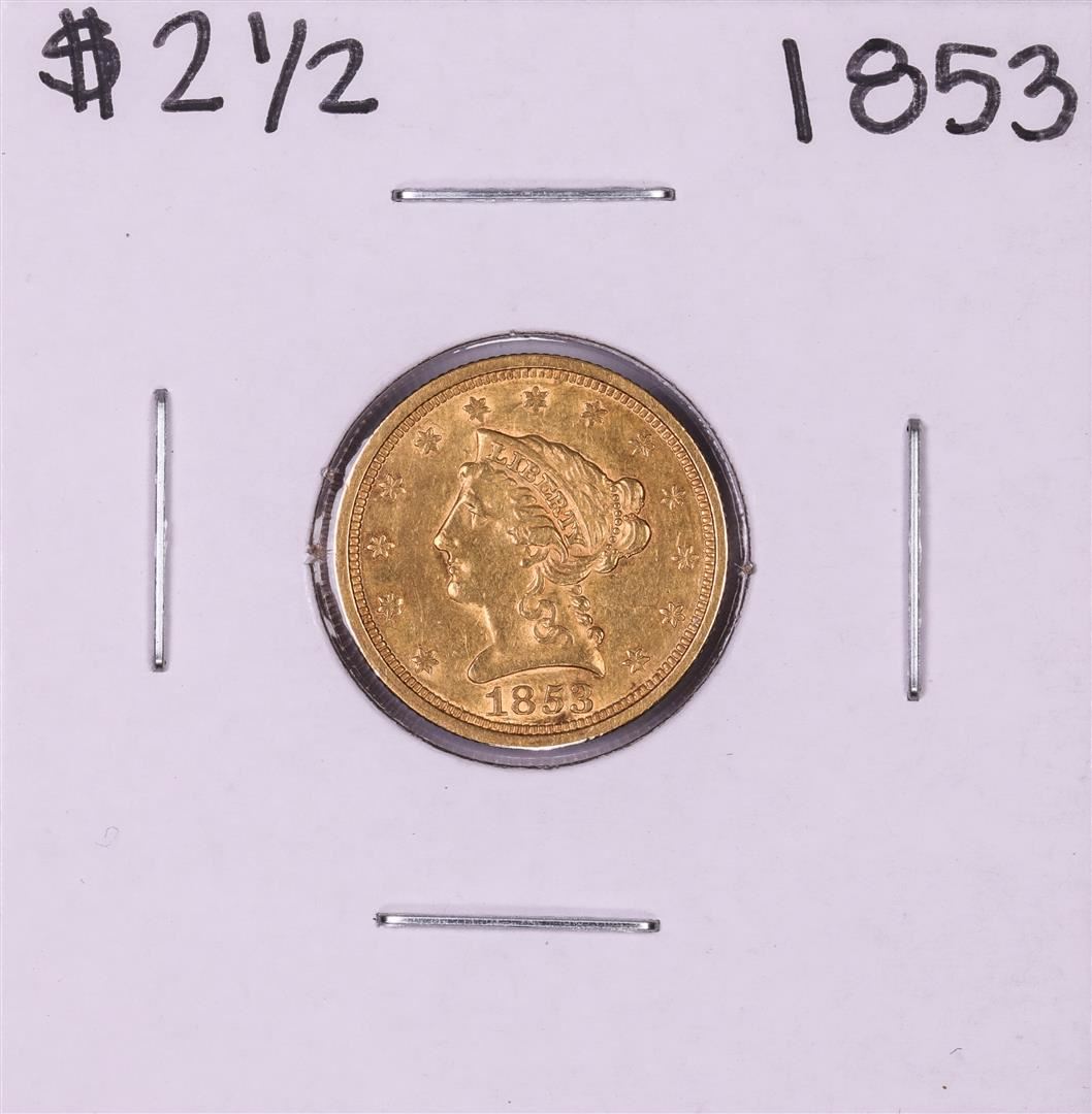 One 1853 $2 1/2 Liberty Head Quarter Eagle Gold Coin.