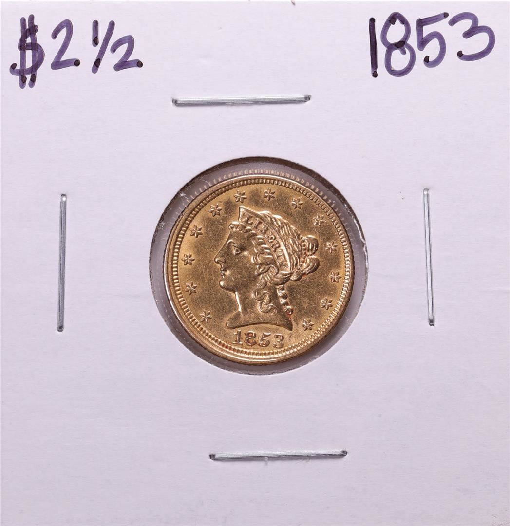 One 1853 $2 1/2 Liberty Head Quarter Eagle Gold Coin.