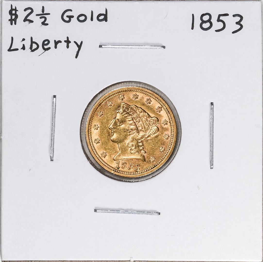 One 1853 $2 1/2 Liberty Head Quarter Eagle Gold Coin.