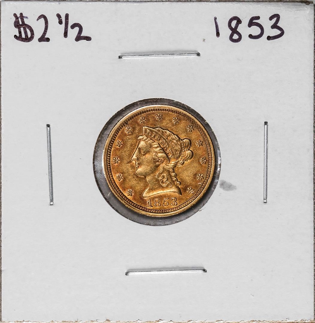 One 1853 $2 1/2 Liberty Head Quarter Eagle Gold Coin.