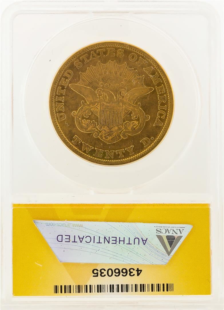 One 1853 $20 Liberty Head Double Eagle Gold Coin ANACS F15. ANACS Certified.