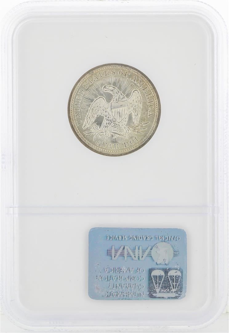 1853 Arrows and Rays Liberty Seated Quarter NGC Graded MS65. After much debate in Congress about the reduction of the intrinsic value of subsidiary coinage, the silver content was reduced and the newly coined quarters and half dollars had arrowheads placed on the obverse and a glory of rays on the reverse to indicate this weight reduction. This one-year type is necessary for any 19th century silver type set, and this nearly brilliant piece would be an excellent addition. There is a faint trace of golden peripheral toning interrupts the otherwise brilliant surfaces of this fully struck Gem. This coin would make a great addition to any collection. This is a one year type coin pcgs estimates 700 in all uncirculated grades, this is one of the best, only a few dozen graded 65 or above. NGC Certified.