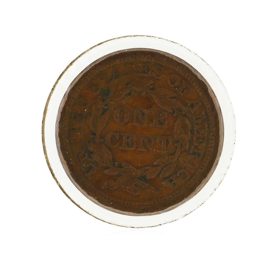 Bidders are advised that certain types of plastic may react with a coin's metal or transfer plasticizer to notes and may cause damage. Caution should be used to avoid storage in materials that are not inert.