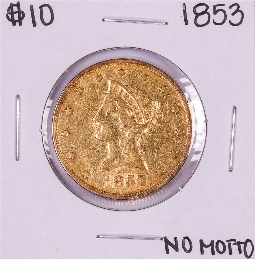 One 1853 No Motto $10 Liberty Head Eagle Gold Coin.