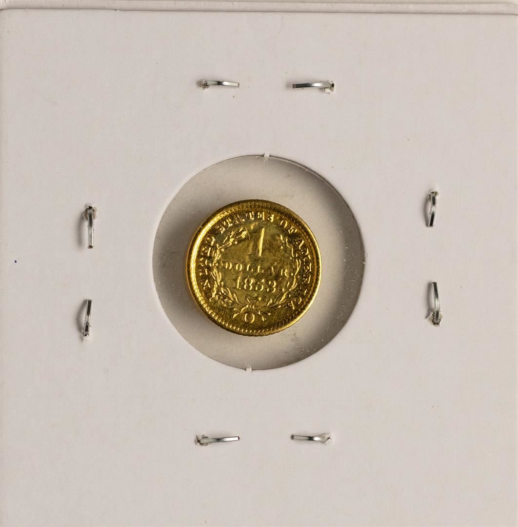 One 1853-O $1 Liberty Head Gold Dollar Coin.