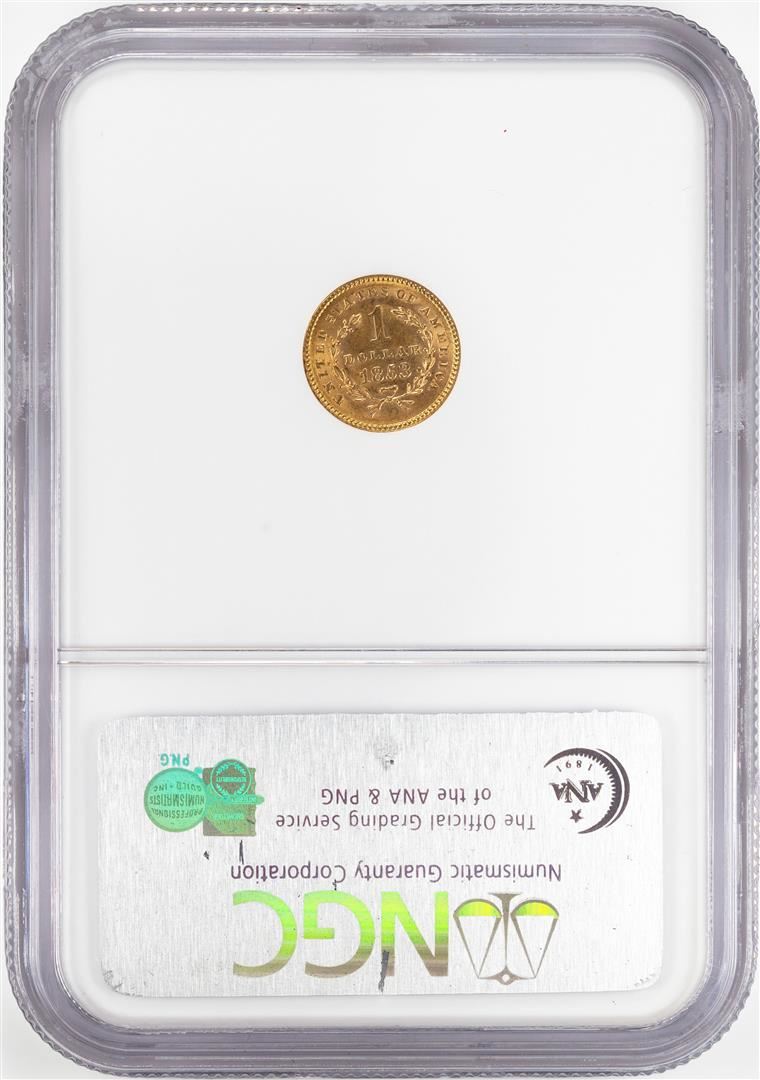 One 1853 Type 1 $1 Liberty Head Gold Dollar Coin NGC MS62. NGC Certified.