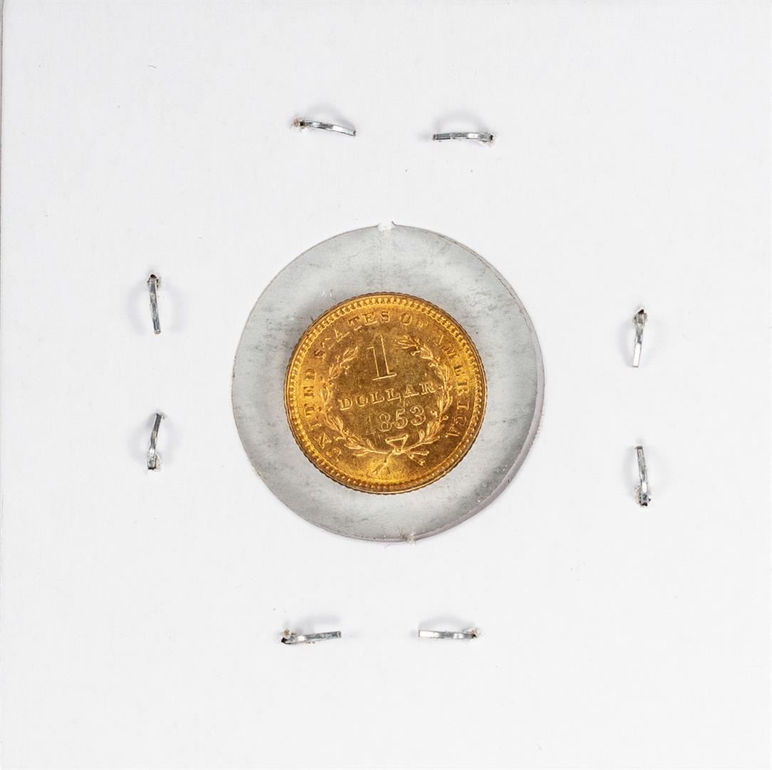 One 1853 Type 1 $1 Liberty Head Gold Dollar Coin.